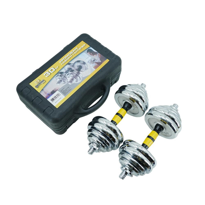 Гантелі розбірні Gemini Sport хромовані з грифом у валізі GA-8010-30 2шт по 15кг