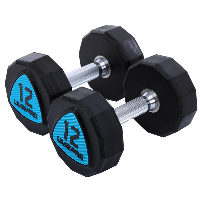 Гантелі цільні професійні з поліуретановим покриттям LiveUp LP8003-12 2шт по 12кг чорний-синій