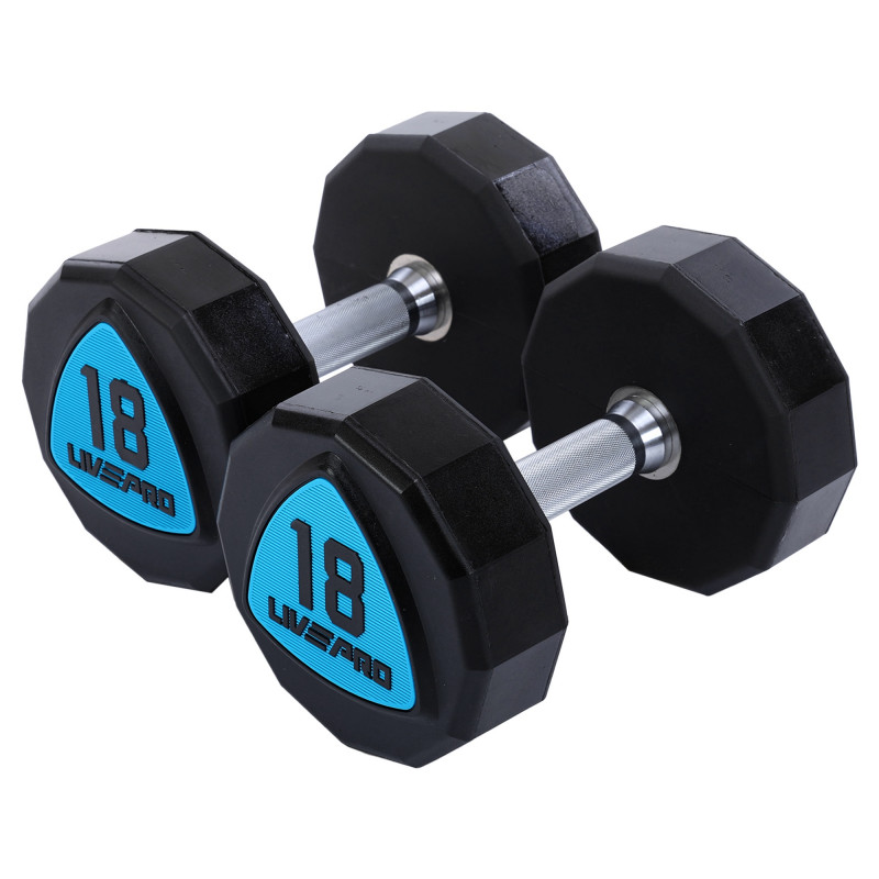 Гантелі цільні професійні з поліуретановим покриттям LiveUp LP8003-18 2шт по 18кг чорний-синій