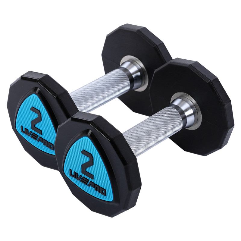 Гантелі цільні професійні з поліуретановим покриттям LiveUp LP8003-2 2шт по 2кг чорний-синій