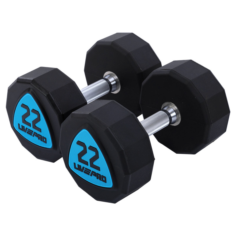 Гантелі цільні професійні з поліуретановим покриттям LiveUp LP8003-22 2шт по 22кг чорний-синій