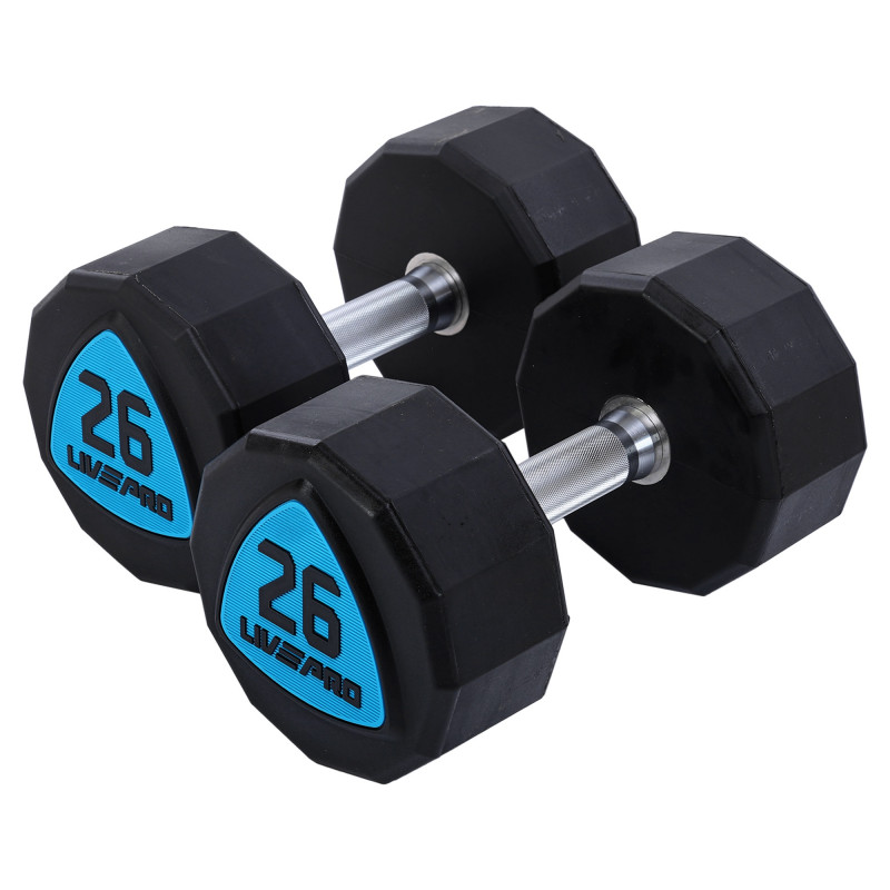 Гантелі цільні професійні з поліуретановим покриттям LiveUp LP8003-26 2шт по 26кг чорний-синій