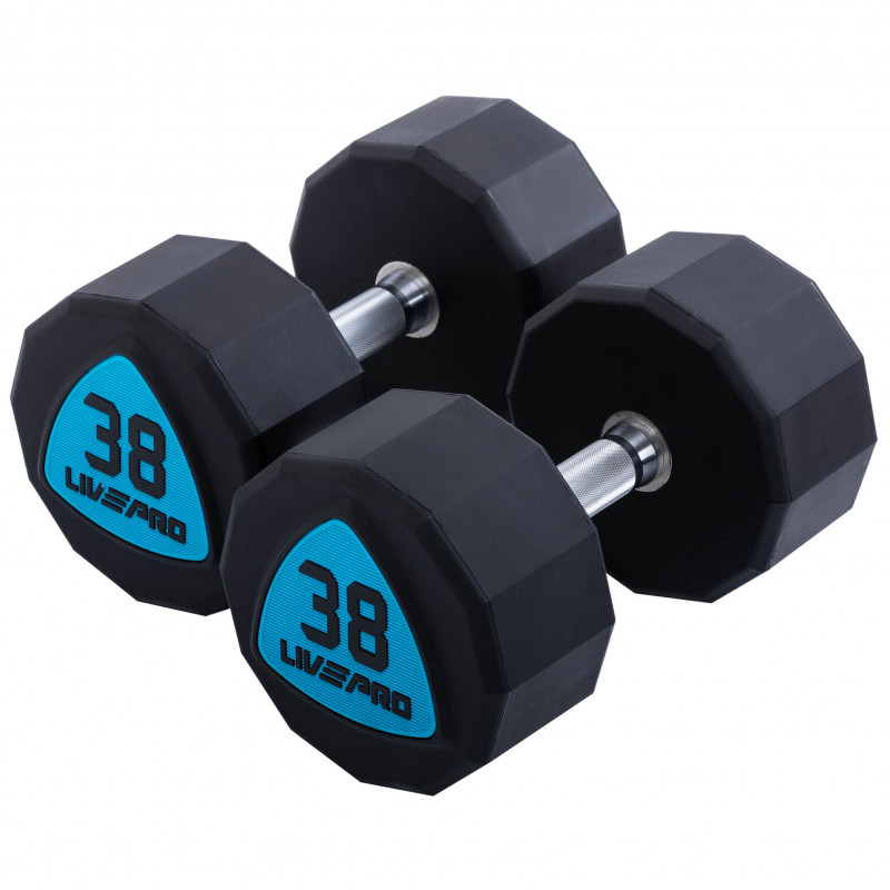 Гантелі цільні професійні з поліуретановим покриттям LiveUp LP8003-38 2шт по 38кг чорний-синій