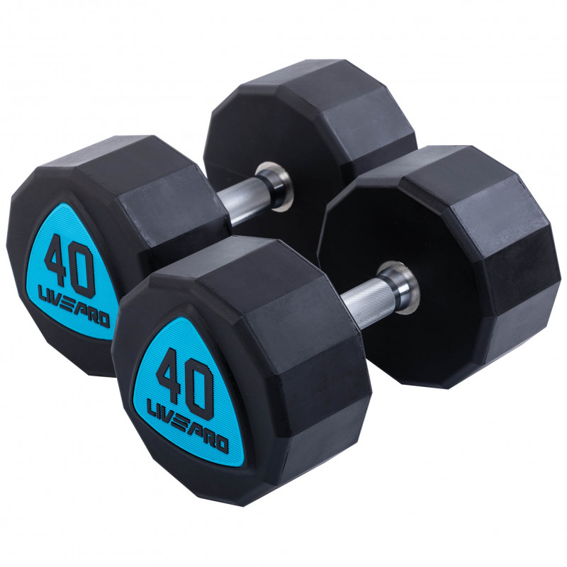 Гантелі цільні професійні з поліуретановим покриттям LiveUp LP8003-40 2шт по 40кг чорний-синій
