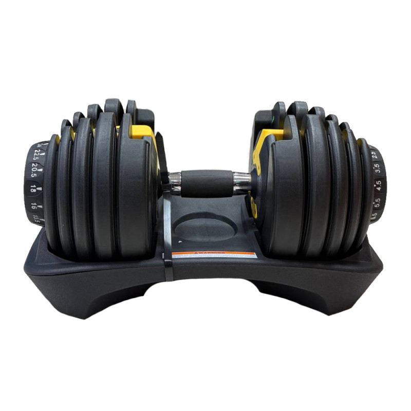 Регульована гантель призначена для проведення силових тренувань у домашніх умовах та у спортзалах. Регульована вага від 2.5 кг до 24 кг підходить для опрацювання всіх основних груп м'язів: рук, плечей, грудей, спини, ніг та преса. Завдяки системі швидкого вибору ваги, гантель замінює цілий набір гантелі і дозволяє легко адаптувати навантаження під будь-який рівень підготовки. Гантель розміщена у зручній пластиковій підставці, а вага вибирається за допомогою поворотного диска з боків. Відмінно підходить для набору м'язової маси, підвищення сили, функціональних тренувань та реабілітаційних вправ та швидко перемикатися між різними вагами для різних вправ.
