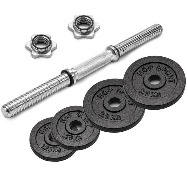 Для того, щоб домогтися бажаного результату від силових і фітнес-вправ, необхідно поступово збільшувати навантаження на м'язи. Для цього використовують простий, але ефективний спортивний інвентар, як гантелі. Гантелі Hop-Sport мають розбірну конструкцію, дозволяючи користувачеві самостійно регулювати навантаження. Гантеля складається зі сталевого грифу і міцних чавунних дисків. Крім того, вона оснащена рифленою ручкою, яка запобігає ковзанню гантелей під час тренування. Диски надійно фіксуються на грифі гвинтовими замками, тим самим забезпечуючи комфортне тренування. Гарантія є важливим підтвердженням необхідної якості. Ми впевнені в товарі, який продаємо, тому надаємо гарантію на обладнання 5 років.