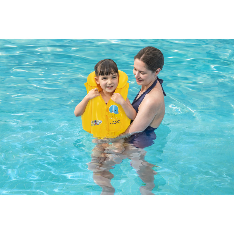 Програма Bestway® Swim Safe ABC™ — це поетапна програма, яка починається із рятувальних жилетів рівня A, призначених для немовлят та малюків, яким потрібна максимальна підтримка. Рятувальні жилети рівня B призначені для малюків, що поступово набувають впевненості, але ще не вміють плавати без сторонньої допомоги. Нарукавники рівня C призначені для дітей, які починають опановувати основи плавання.
