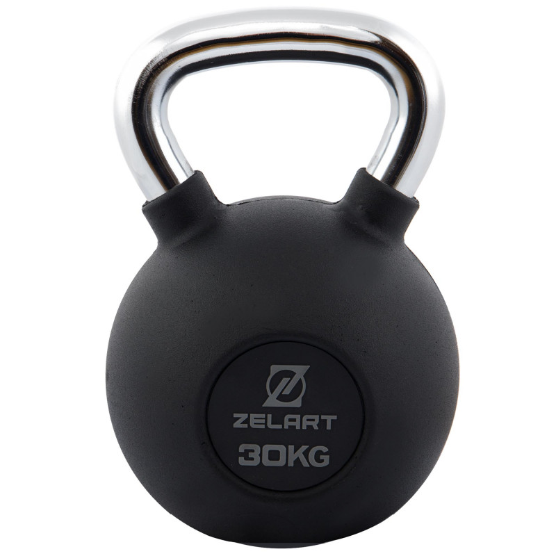 Гиря тренувальна цільна чавунна гумова з хромованою ручкою Zelart TA-7794-30 30кг чорний