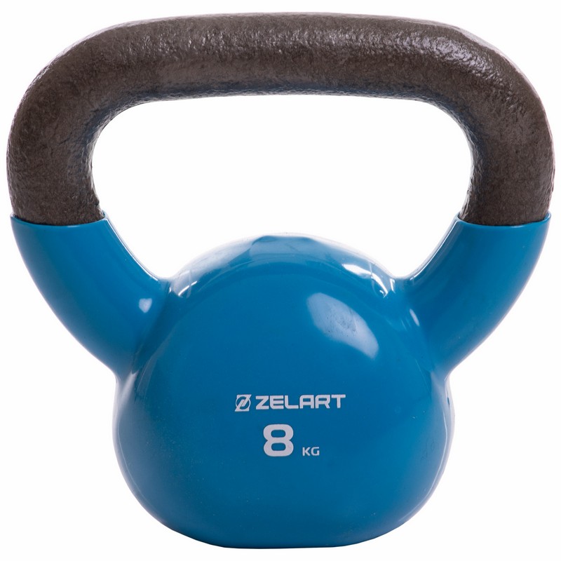 Гиря тренувальна цільна чавунна з вініловим покриттям Zelart TA-2680-8 вага 8кг синій