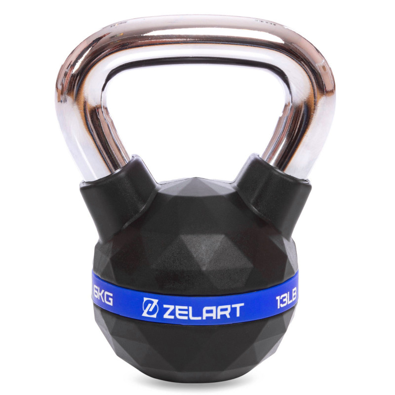 Гиря тренувальна цільна з поліуретановим покриттям і хромованою ручкою Zelart FI-1973-6 вага 6кг чорний
