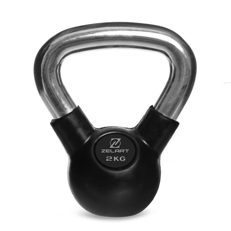 Гиря тренувальна цільна гумова з хромованою ручкою Zelart TA-5162-2 вага 2кг чорний