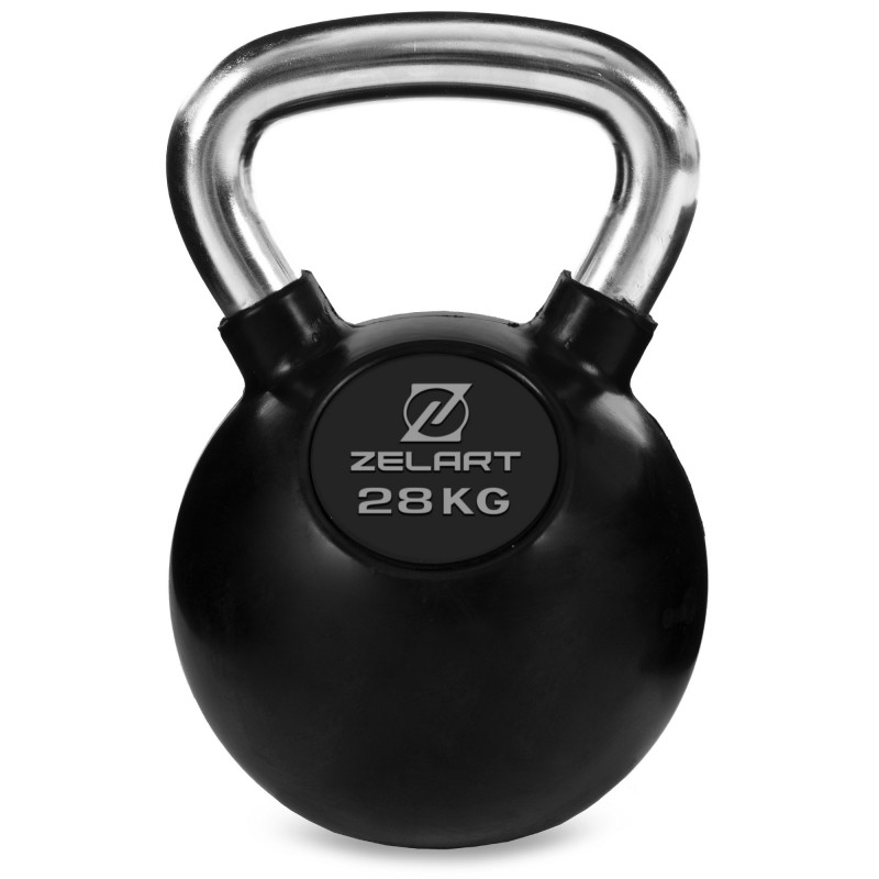 Гиря тренувальна цільна гумова з хромованою ручкою Zelart TA-5162-28 вага 28кг чорний