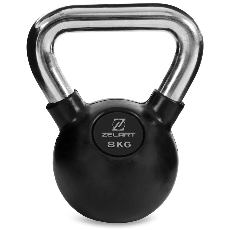 Гиря тренувальна цільна гумова з хромованою ручкою Zelart TA-5162-8 вага 8кг чорний