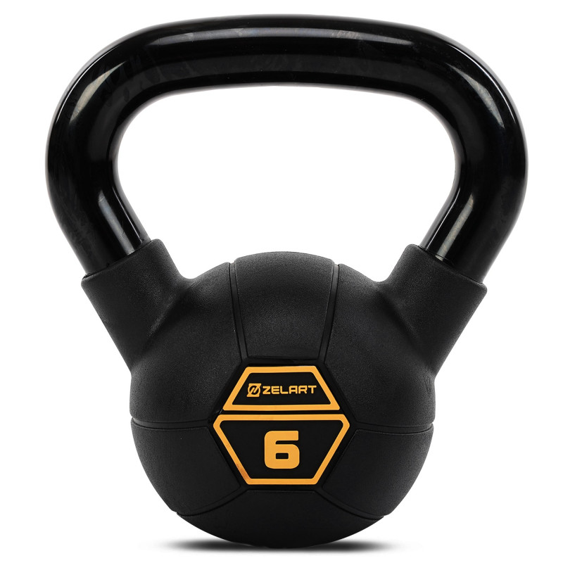 Гиря тренувальна цільна сталева з PVC покриттям Mdbuddy TA-5428-6 вага 6кг чорний