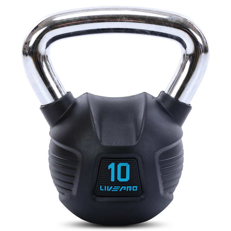 Гиря тренувальна цільна гумова з хромованою ручкою LiveUp LP8043-10 вага 10кг чорний