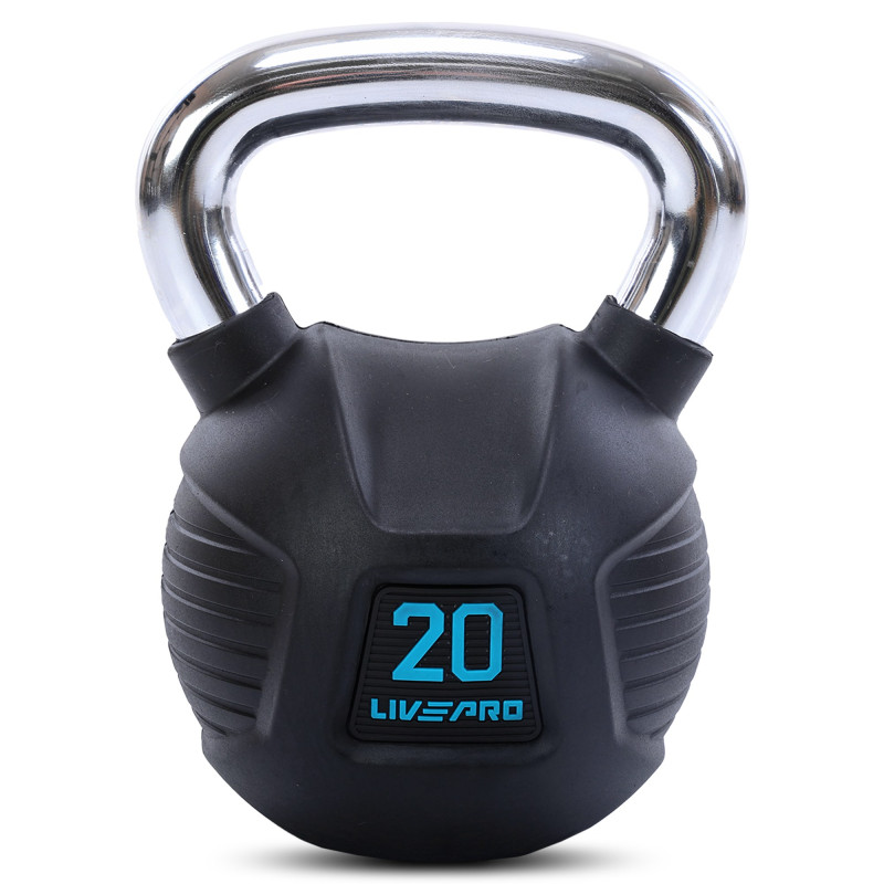 Гиря тренувальна цільна гумова з хромованою ручкою LiveUp LP8043-20 вага 20кг чорний