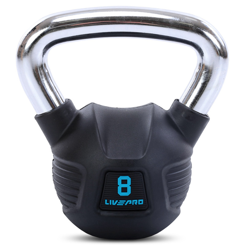 Гиря від бренду LiveUp має стабільний центр ваги та точну вагу. Спортивний снаряд виготовлений із заліза методом лиття. Після формування гиря покривається шаром гуми, який дає змогу захистити підлогове покриття від пошкоджень унаслідок падіння снаряда. Також покриття захищає саму гирю від корозії. Ручка гирі хромована, що запобігає її корозії.