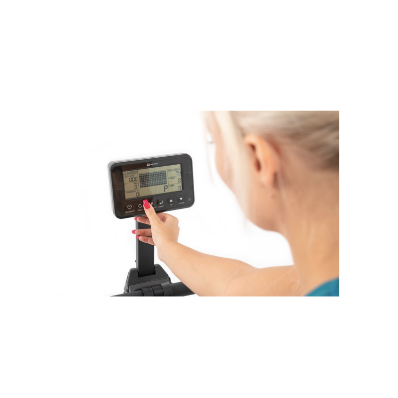 Контролюйте свої результати, змагайтесь, випробовуйте та перемагайте себе! Підвищуйте рівень своїх тренувань за допомогою багатофункціонального тренувального комп'ютера, який відстежує всі найважливіші параметри під час тренувань. Його інтуїтивно зрозумілий дисплей розташований на рівні ваших очей, завдяки чому ви можете стежите за ефективністю занять. Ви можете наблизити дисплей або змінити положення в будь-який момент завдяки рухомій консолі. А також отримати точне вимірювання пульсу, доповнивши обладнання сумісним телеметричним поясом Hop-Sport HS-P095PR. Пояс в комплектацію тренажера не входить.