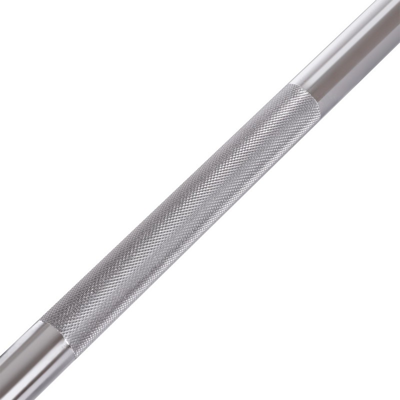 Зони хвату на грифі покриті накатом у вигляді дрібної насічки, за рахунок чого долоні атлета не ковзають під час виконання вправи - в результаті тренуватися з ним зручно та безпечно.