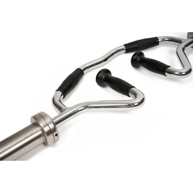Олімпійський гриф Bi-Tri-Trap має спеціально розроблені рукоятки, які забезпечують зручне й безпечне зчеплення з руками під час виконання вправ. Штанга з чотирма хватами допоможе ефективно нарощувати силу і м'язову масу як початківцям, так і досвідченим атлетам, зводячи ризик травм спини до мінімуму. Також гриф рекомендований для силових тренувань, які спрямовані на розвиток біцепсів, трицепсів та спинних м'язів. Включаючи згинання рук, розгинання трицепсів, тяги верхньої та нижньої блокової системи та інші.