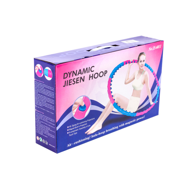 Конструкція, яка складається з окремих частин дозволяє зручно зберігати та транспортувати хулахуп. Для його виробництва використовувалися високоякісні матеріали, що робить коло дуже міцним. Не має значення, яка у Вас фізична підготовка чи вік, будь-хто може тренуватися з обручем!
