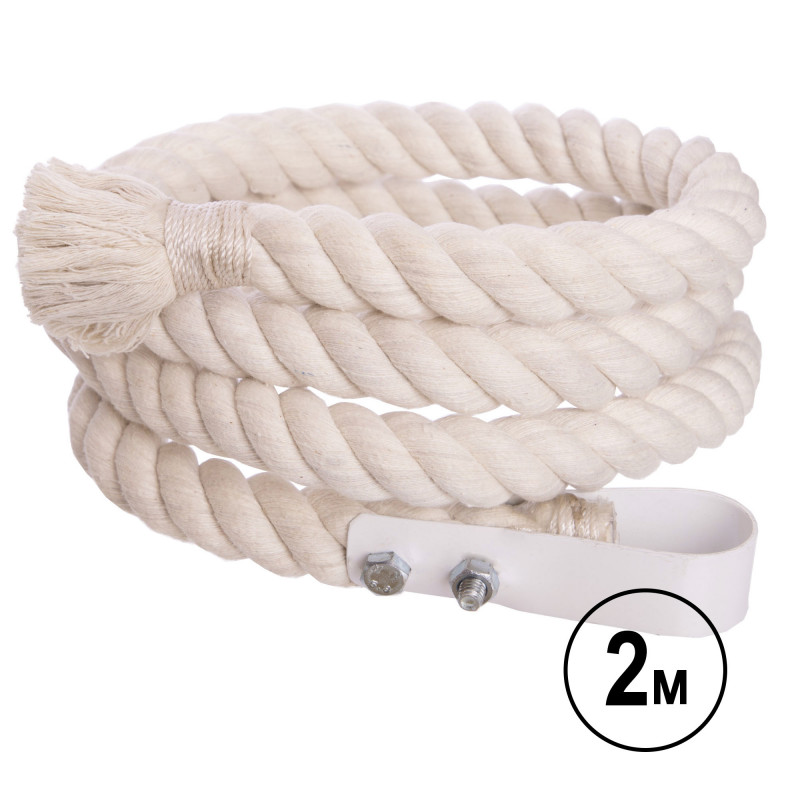 Спортивний канат виготовлений з бавовни – натурального й гіпоалергенного матеріалу. Він безпечний у використанні, зносостійкий та міцний. Те, що треба, щоб бути спокійними за дитину. Діаметр 2,6 см оптимальний для зручного хвату та дозволяє виконувати підйом, дотримуючись правильної техніки.
