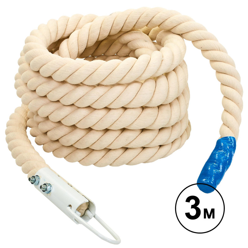 Матеріал виготовлення – натуральна бавовна з міцним плетінням. Витривалий, не рветься навіть за дуже інтенсивного багаторазового використання. Щоб канат не розплітався, на один його кінець закріплений пластиковий наконечник.