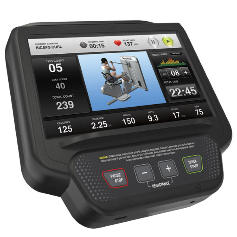 - Унікальна автоматична система вибору вантажів стека! Установка навантаження одним дотиком сенсорного екрану консолі. Без зайвих незручностей - не встаючи з тренажера ви легко вибираєте навантаження для верхньої частини тіла, так само просто як і для ніг. Незамінне в реабілітаційних цілях і для людей старшого покоління;
