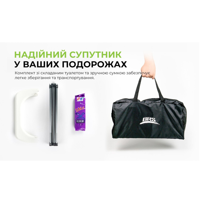 Складаний туалет BRS-94 — це просте та зручне рішення для тих, хто проводить багато часу на відкритому повітрі. Модель буде корисна в тому числі для туристів, рибалок, мисливців та інших користувачів, які потребують ефективного способу утилізації відходів, коли немає доступу до стаціонарного туалету.