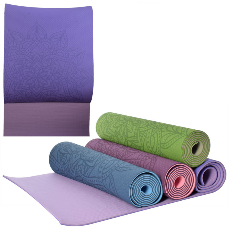 Килимок для фітнесу та йоги TPE+TC TPE-0006P 183см 61см 6мм з малюнком Фіолетовий