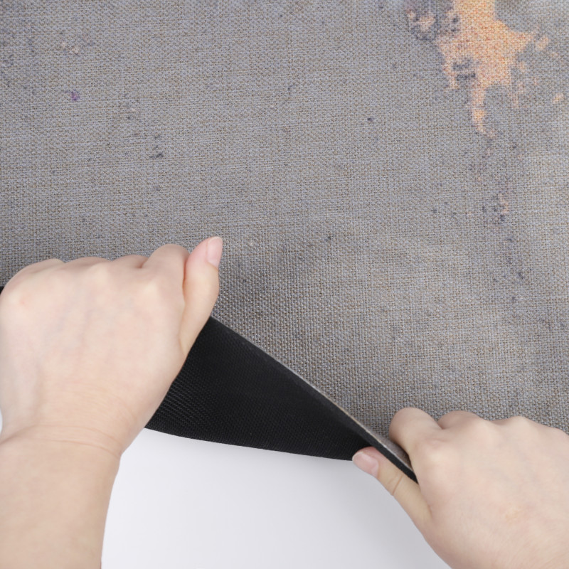 Килимок має дві сторони: лляний верх з оригінальним малюнком та низ із натурального каучуку з додаванням волокон джуту. Завдяки тканинній поверхні килимок вбирає вологу, що є величезною перевагою в порівнянні з іншими килимками. Каучук має відмінні протиковзкі властивості, не електризується, не пропускає холод від підлоги і не зберігає запах. Джут надає додаткової ваги та міцності, значно збільшуючи термін служби виробу.