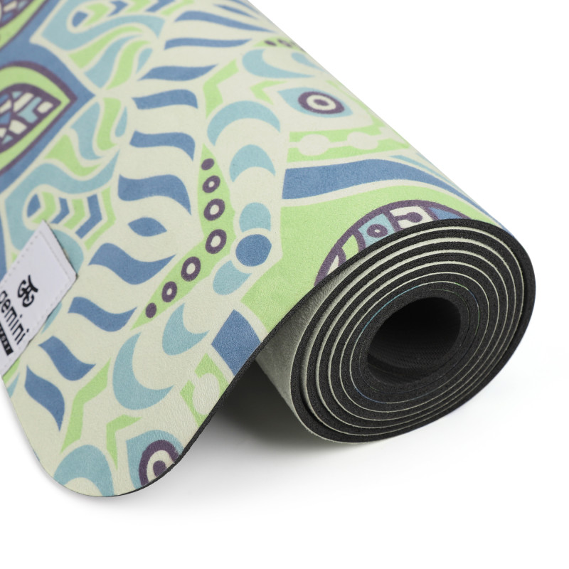 Двошаровий килимок виготовлений з натурального каучуку та замші, має унікальний дизайн. Килимок має відмінні властивості, що амортизують, тепер заняття на твердій підлозі не будуть завдавати незручностей. Рельєфна нижня сторона, що повністю складається з натурального каучуку, має чудовий антиковзний ефект. При заняттях йогою та виконанні складних асан ви можете на нього покластися у прямому та переносному значенні! Верхня частина килимка виготовлена із замші, яка, у разі потреби, поглине піт і не дасть вашим рукам та ногам ковзати навіть під час дуже інтенсивних тренувань. Йога мат можна використовувати і як гімнастичний килимок – вдома та у спортивному залі.