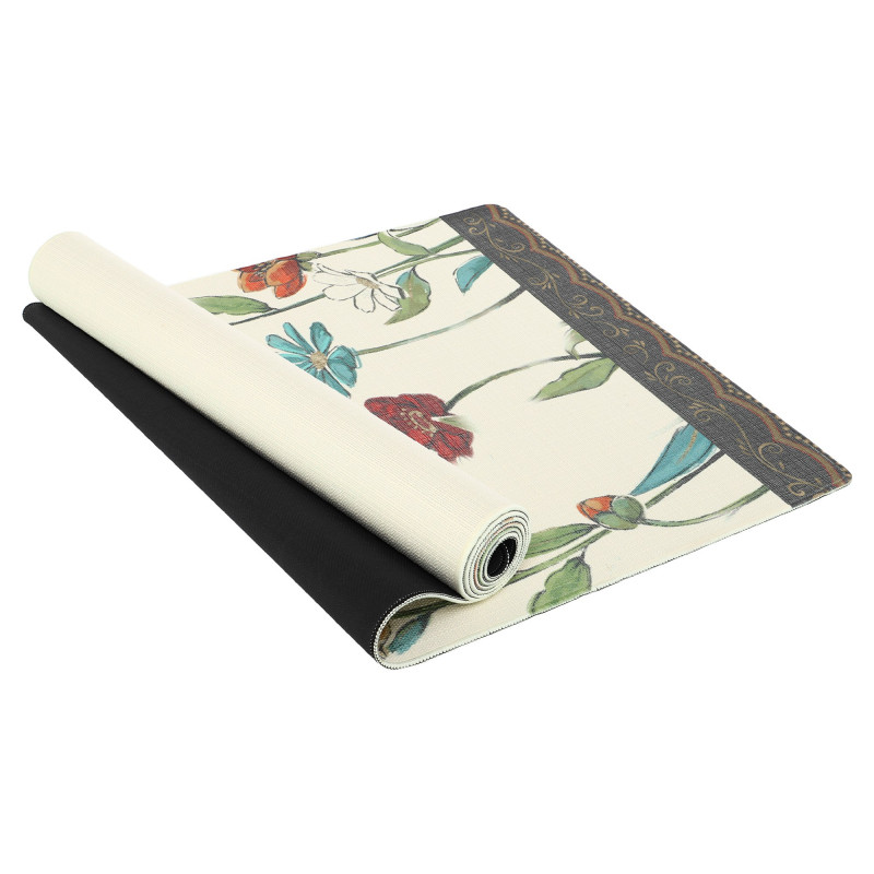 Килимок для йоги Льняний двошаровий каучуковий Record FI-7157-2 розмір 183x61x0,3см з Квітковим принтом бежевий