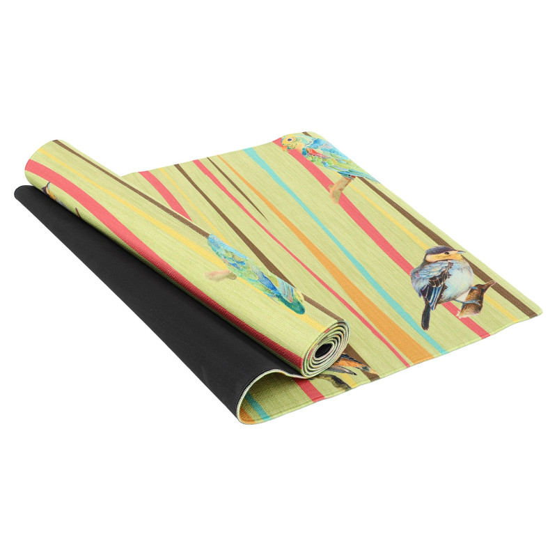 Килимок для йоги Льняний двошаровий каучуковий Record FI-7157-5 розмір 183x61x0,3см принт Птахи бежевий