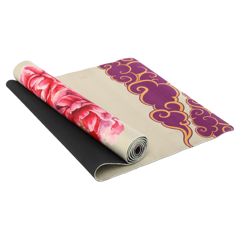 Килимок для йоги Льняний двошаровий каучуковий Record FI-7157-7 розмір 183x61x0,3см принт Сакура бежевий