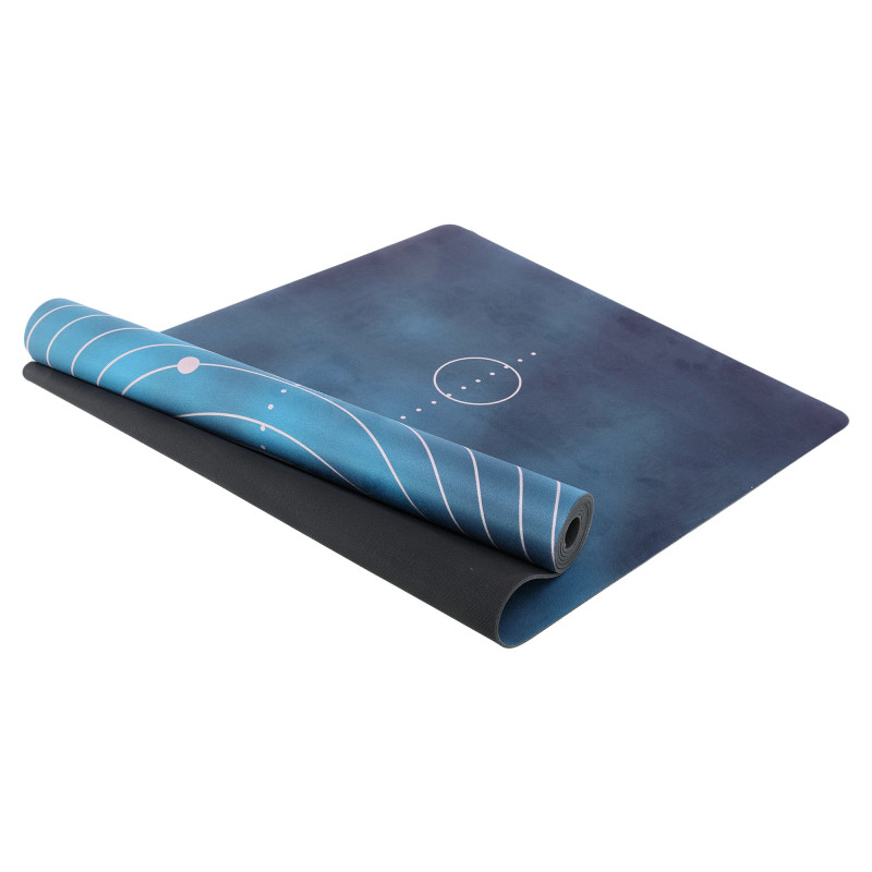 Килимок для йоги замшевий каучуковий Record FI-5662-71 розмір 183x61x0,3см з принтом Геометричні круги темно-синій-чорний