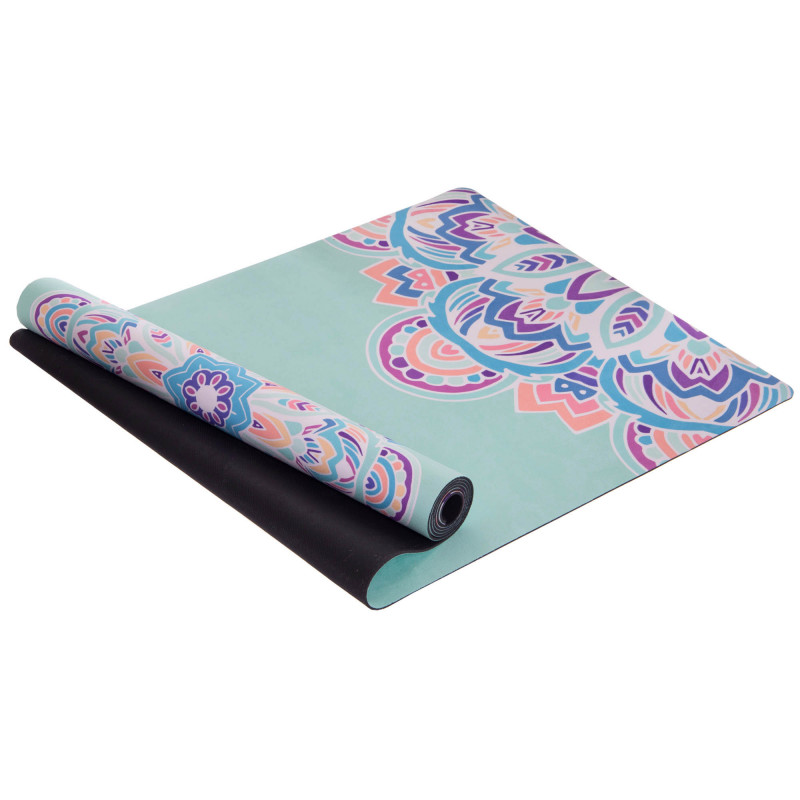 Килимок для йоги Замшевий каучуковий двошаровий Record FI-5662-11 розмір 183x61x0,3см з Квітковим принтом м'ятний