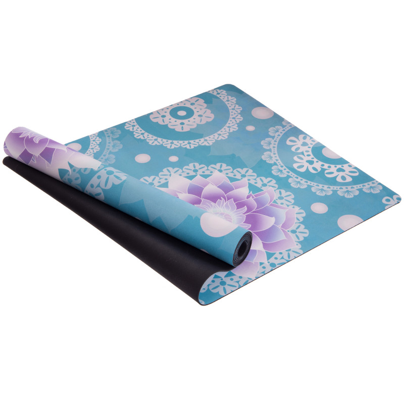 Килимок для йоги Замшевий каучуковий двошаровий Record FI-5662-21 розмір 183x61x0,3см з Квітковим принтом бірюзовий