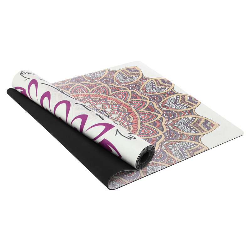 Килимок для йоги Замшевий каучуковий двошаровий Record FI-5662-24 розмір 183x61x0,3см з принтом Спокій Лотоса бежевий