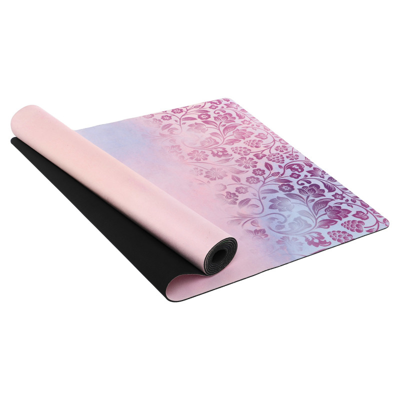 Килимок для йоги Замшевий каучуковий двошаровий Record FI-5662-26 розмір 183x61x0,3см з Квітковим принтом рожевий