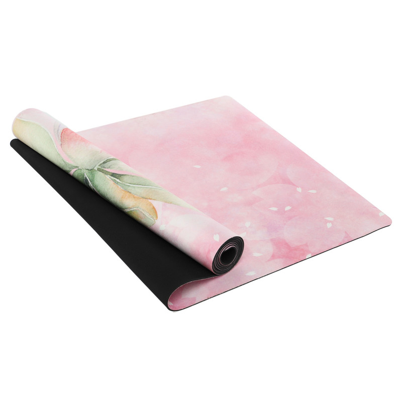 Килимок для йоги Замшевий каучуковий двошаровий Record FI-5662-28 розмір 183x61x0,3см з принтом Ніжність Лотоса рожевий