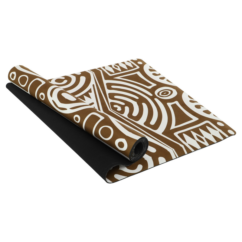 Двошаровий килимок складається з шару каучуку та шару замші. Замшевий верх має цікавий принт, який дає змогу не тільки комфортно тренуватися, а й отримувати естетичне задоволення від занять. Лицьова поверхня килимка не слизька. Відмінною липкістю володіє тильна сторона, виготовлена з каучуку. Цей матеріал добре прилипає до різних покриттів і точно не буде ковзати.