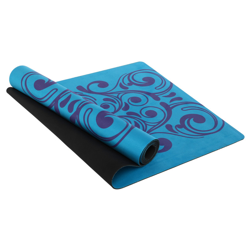 Двошаровий килимок складається з шару каучуку та шару замші. Замшевий верх має цікавий принт, який дає змогу не тільки комфортно тренуватися, а й отримувати естетичне задоволення від занять. Лицьова поверхня килимка не слизька. Відмінною липкістю володіє тильна сторона, виготовлена з каучуку. Цей матеріал добре прилипає до різних покриттів і точно не буде ковзати.