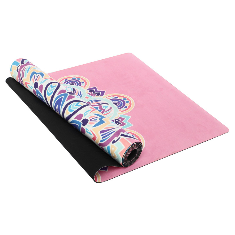 Килимок для йоги Замшевий каучуковий двошаровий Record FI-5662-6 розмір 183x61x0,3см з принтом Потрійний Оберіг рожевий
