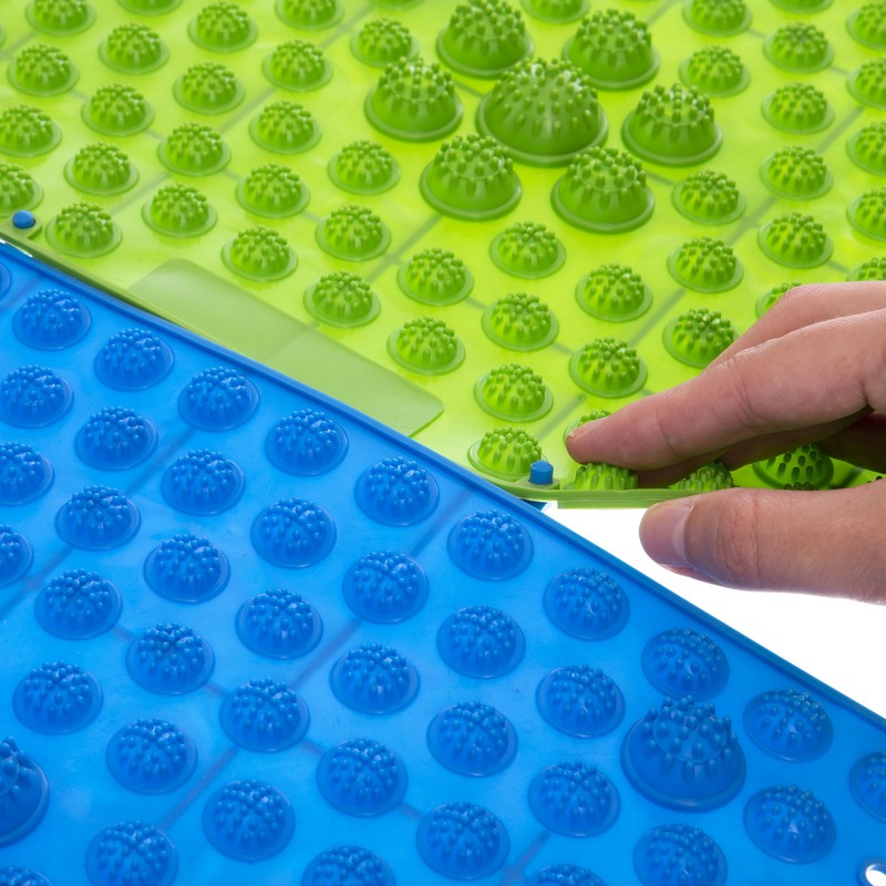 Відмінна риса цієї моделі - сегментоване покриття. Тобто малюнок на поверхні неоднорідний, а значить, на стопи виявляється різна дія, що підвищує ефективність занять. Він виготовлений з гуми - матеріалу, який не стирається і довго служить, а крім того - гігієнічний і легко миється. Більші виступи створюють враження ходьби галькою, дрібні горбики активно стимулюють стопу і сприяють м'язовому розслабленню. Яскравий життєрадісний колір виробу додатково подарує естетичну насолоду.