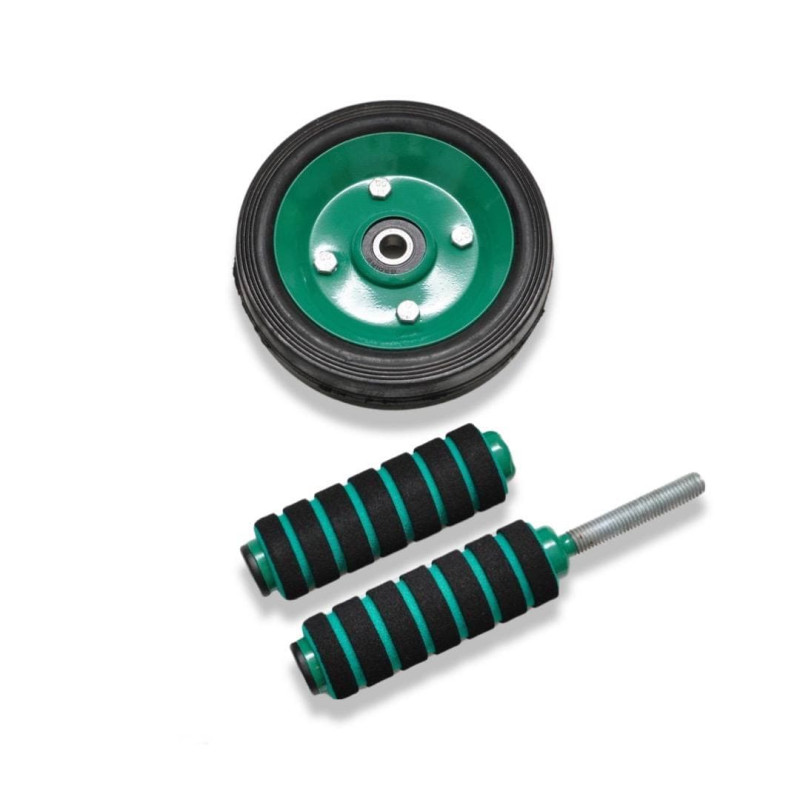 - Безпека. Сама конструкція зроблена з металу, а коліщатко та ручки прогумовані. Якщо долоні спітніють, вони не ковзатимуть по снаряду. Колесо для преса витримує вагу 150 кг, тому воно доступне середньостатистичного користувача.