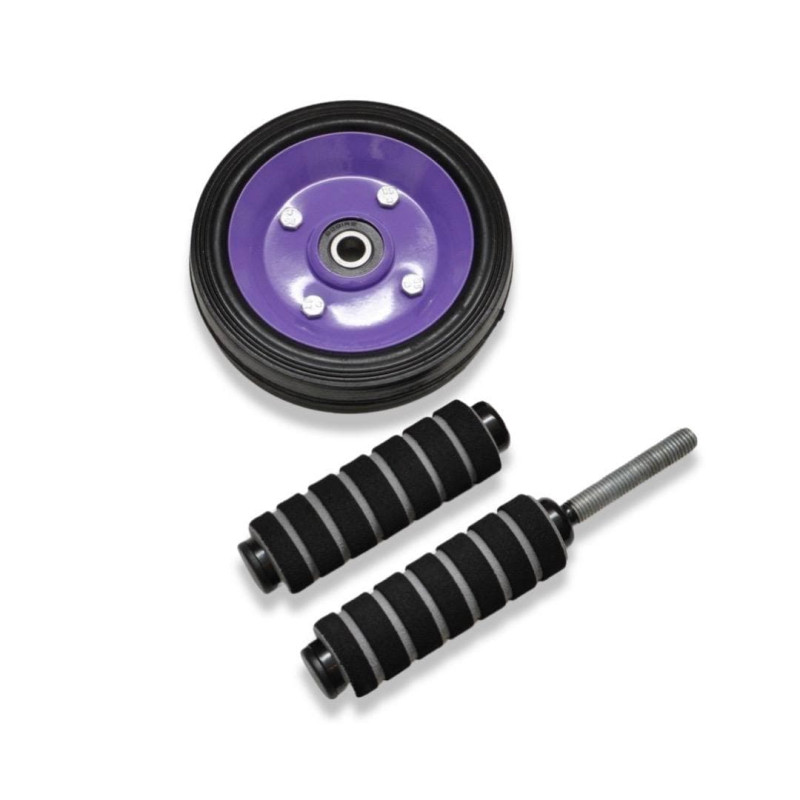 - Безпека. Сама конструкція зроблена з металу, а коліщатко та ручки прогумовані. Якщо долоні спітніють, вони не ковзатимуть по снаряду. Колесо для преса витримує вагу 150 кг, тому воно доступне середньостатистичного користувача.