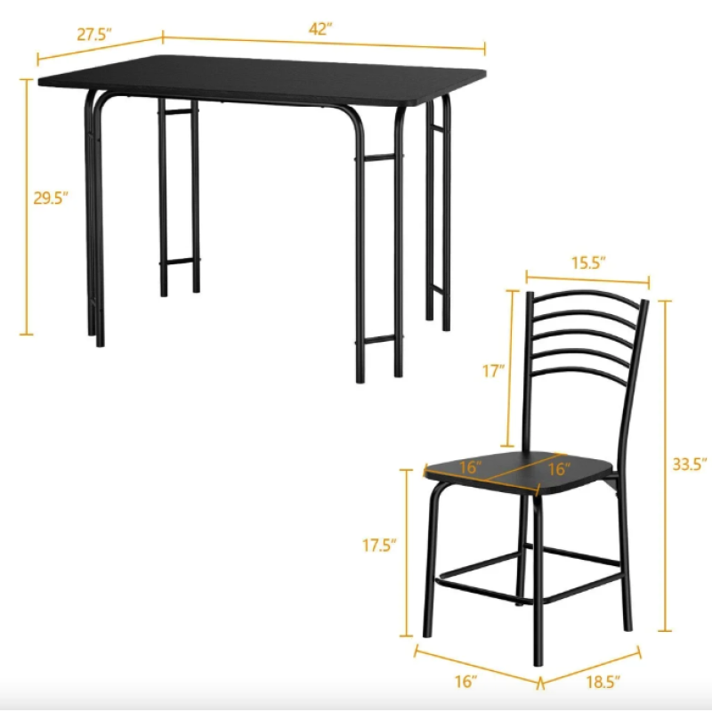 У світі, де швидкість і ритм визначають наш побут, важливо зберегти куточок, де час сповільнюється - де збирається родина, де звучить сміх, де народжуються щоденні традиції. Комплект меблів Katarina від американського бренду Costway - це не просто обідня зона, це епіцентр тепла та спілкування. Поєднання чорного металу з дерев'яною текстурою стільниці створює стиль, що доречно виглядає в інтер'єрах від Loft до сучасного мінімалізму. Такий чорний обідній гарнітур виглядає дорого, але водночас залишається теплим і домашнім. Зібратись за комплектом стіл і 4 стільці - означає подарувати собі момент спокою, комфорту та вишуканості.