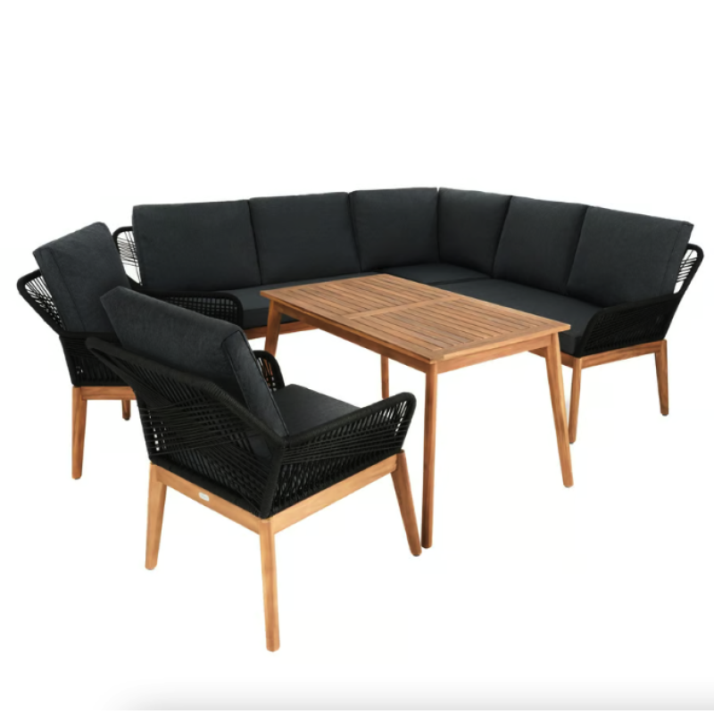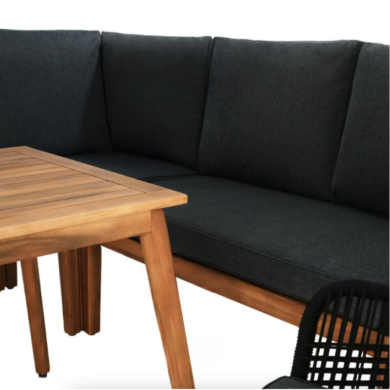 Ви мрієте про особливе місце для відпочинку просто неба - стильне, затишне та функціональне? Садовий комплект Albenga від Di Volio - це втілення елегантного дизайну, натуральної естетики та виняткового комфорту. Завдяки міцній конструкції, використанню деревини акації та ретельній обробці кожної деталі, цей набір ідеально пасуватиме для тераси, саду або відкритої веранди. Гарнітур розрахований на комфортний відпочинок до семи осіб, тож стане центром теплих зустрічей з родиною та друзями.