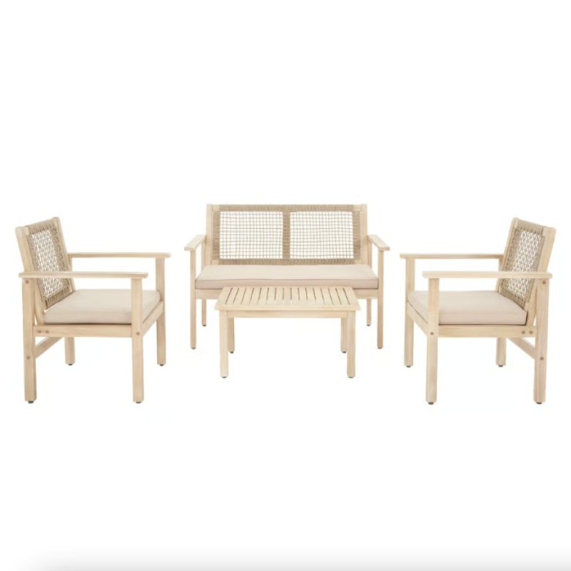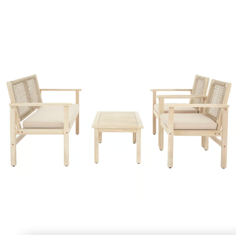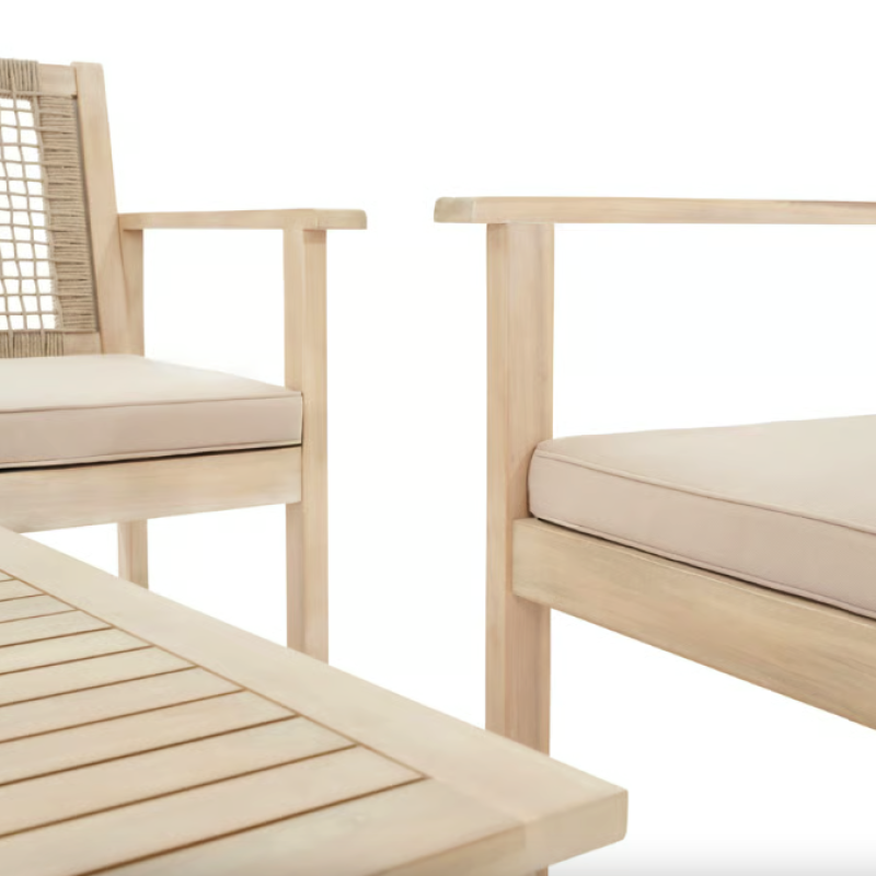 Відкрийте для себе поєднання комфорту, елегантності та практичності з 4-місним комплектом Marata від Di Volio. До гарнітура входять двомісна лавка, два зручних крісла та журнальний столик, що разом створюють ідеальну зону для відпочинку просто неба. Натуральна деревина акації (FSC), міцне поліпропіленове плетіння та м'які подушки створюють стильний образ, а також забезпечують довговічність у використанні. Гарнітур стане естетичним центром вашої тераси, саду чи балкону - ідеальне місце для щоденних радощів та довгих літніх вечорів.